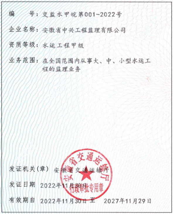 水运工程监理甲级