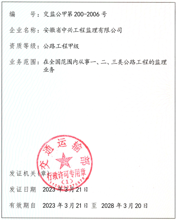 公路工程监理甲级