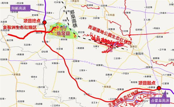 本项目选线区域内分布有泉鞍洲生态红线及谷河省级湿地公园、王家坝国家湿地公园,设计过程中需合理选择线位,尽量减小项目建设对生态环境的影响。