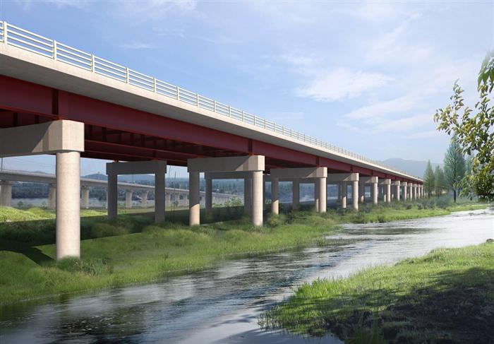 2、采用双主梁体系,全宽预制桥面板,横向预应力结构,纵向普通钢筋混凝土结构,大大降低了造价,使得中小跨径桥梁钢混组合梁与预应力混凝土箱梁基本相当。