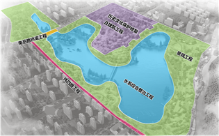 自2019年4月起,潜山雪湖片区的“蝶变重生计划” 雪湖片区水系综合整治工程与雪湖生态景观及历史文化保护修复工程项目设计正式启动。并于10月28日开工建设,项目采用近远期分期建设,开发时序采用“蝶”形开发,近期以主轴线+水体景观打造为主,搭建蝶身骨架;后期建设完善“蝶翼”,开展周边建筑拆迁工作,改建城市公园绿地,完善公园休闲观光功能。雪湖公园将以艺韵之姿、壮丽之势蝶变绽放,向潜山市人民献礼。